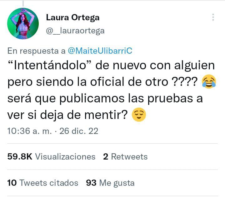 Ortega vio el mensaje y no dudó en contestar lo que muchos piensas es un filazo para la ex de su nuevo “amigo”.