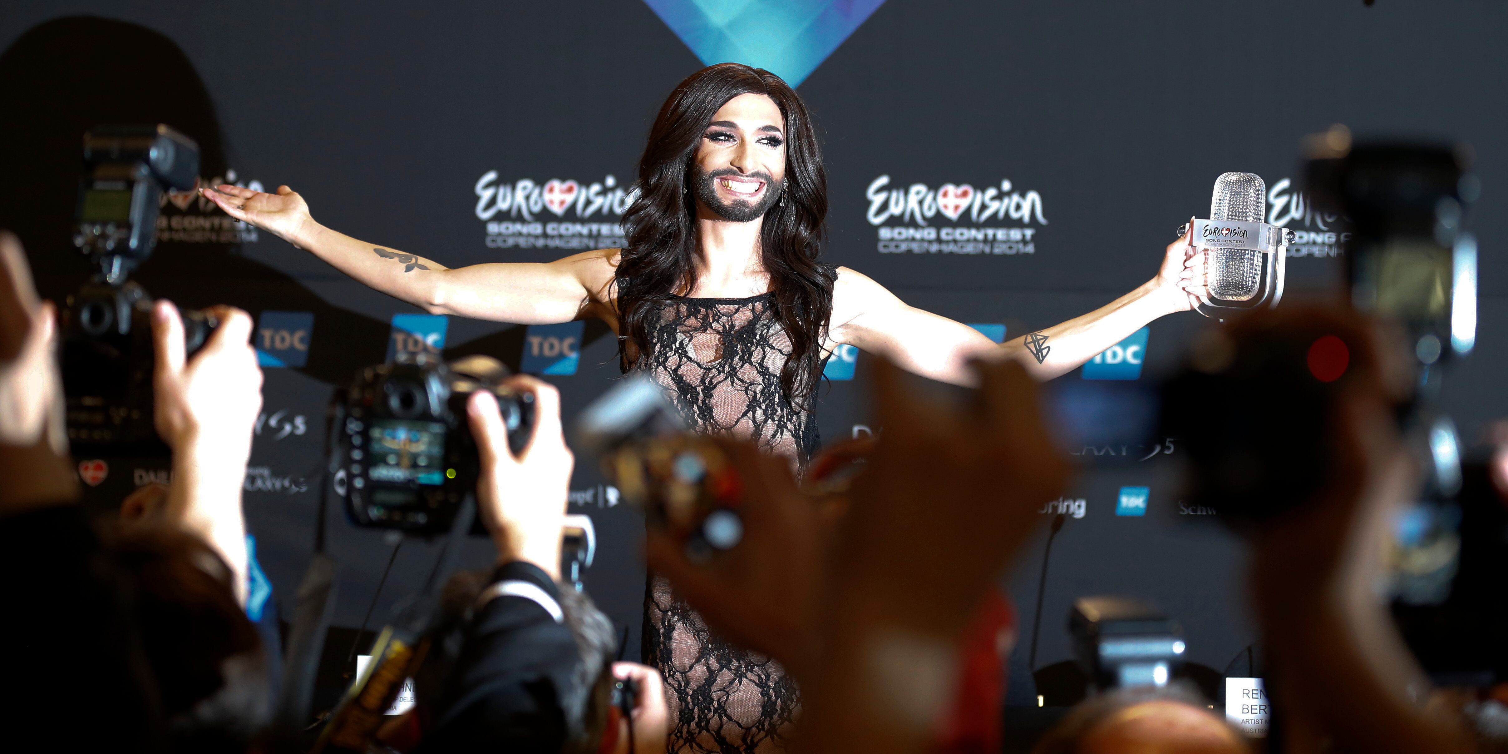 Sí, obviamente se estaba refiriendo a Conchita Wurst, participante y ganadora del concurso en 2014 con su temazo ‘Rise like a phoenix’.