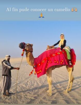 Ni los camellos había podido conocer la también presentadora de De boca en boca, por lo que estaba como loca con el paseo que le dieron con el sol recién saliendo.