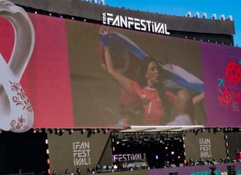 La presentadora de Sábado Feliz asistió este martes al festival ubicado en la ciudad de Doha y logró que la captaran las cámaras y su imagen fuera proyectada en las pantallotas del lugar.