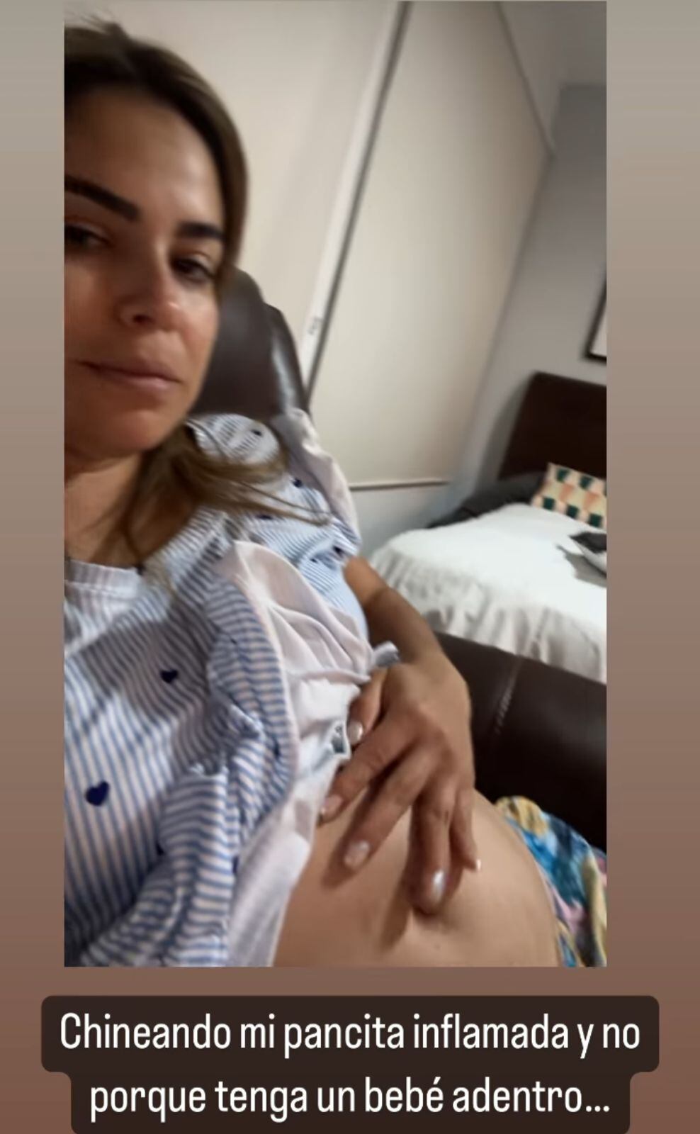 La comunicadora vaciló en sus historias compartiendo que estaba chineando su pancita inflamada y que no era por un bebé.