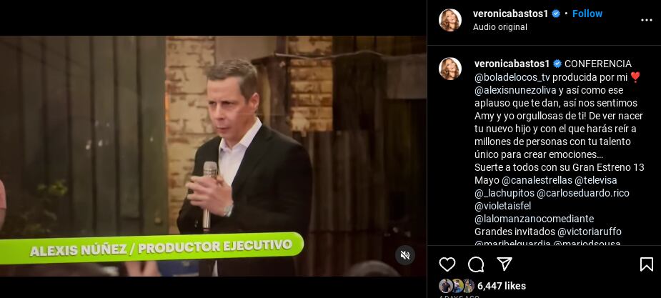 Sin embargo, el sábado 6 de mayo, la tica hizo una publicación en su Instagram sobre un proyecto televisivo a cargo de Núñez, en la que se confesó orgullosa de él.