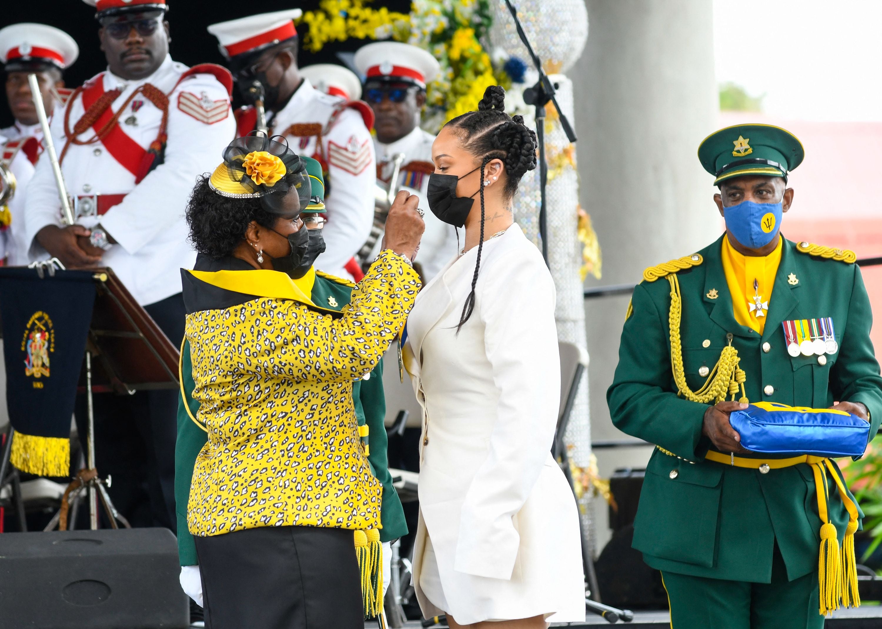 “La autora de Umbrella o Diamonds ha infundido imaginación al mundo a través de la búsqueda de la excelencia con su creatividad, su disciplina y, por encima de todo, su extraordinario compromiso con su tierra natal”, dijo la primera ministra Mia Mottley a los dignatarios reunidos en las celebraciones de este martes.