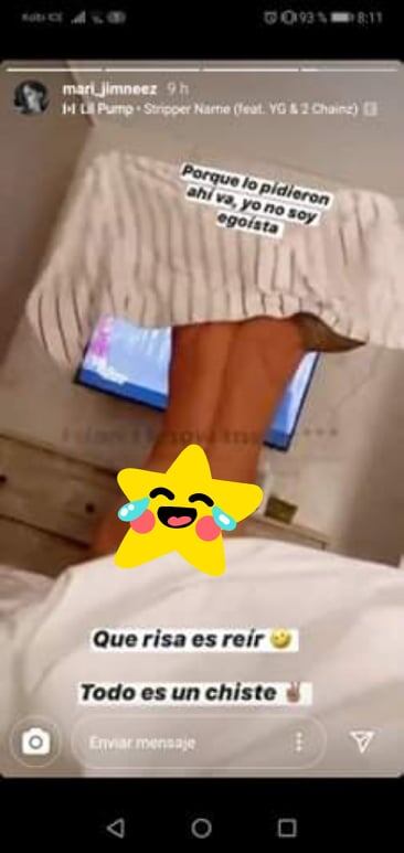 Así lo demostró la muchacha al subir un video en su cuenta de Instagram en el que muestra las nalgas de Jonathan Moya, quien en ese momento estaba desnudo y secándose con un paño. Por motivos de censura le pusimos una estrellita, pero en la imagen original se ve todo, todo.