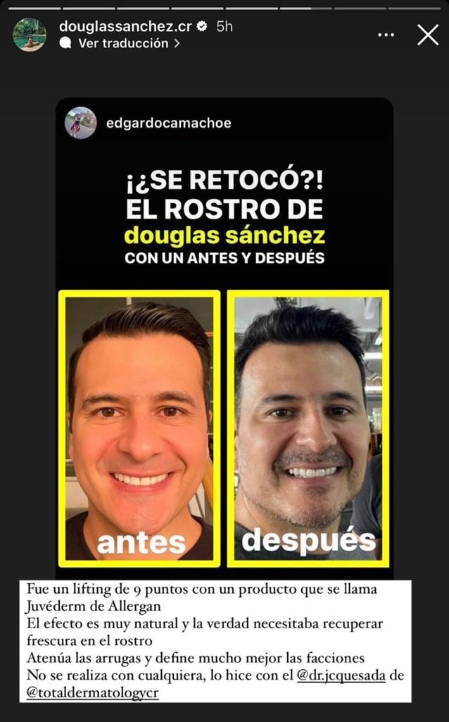 Douglas reaccionó a la publicación con un reposteo de la historia donde explicó detalladamente qué se hizo, por qué se lo hizo y cómo se siente después del cambio que, efectivamente, le quitó añitos de encima y eso que él tiene apenas 43 almanaques.