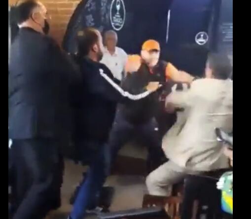 Según se ve en varios videos que circulan en rede sociales, ambos se empezaron a gritar y cuando el actor iba hacia su contrincante, una persona se metió en su camino.