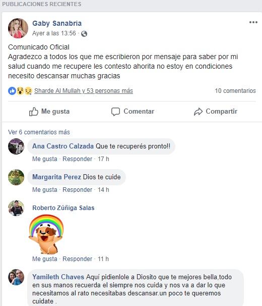 Además, este mismo domingo publicó un mensaje en su cuenta de Facebook, en la que tampoco dio mayor detalle de lo que le sucedió.