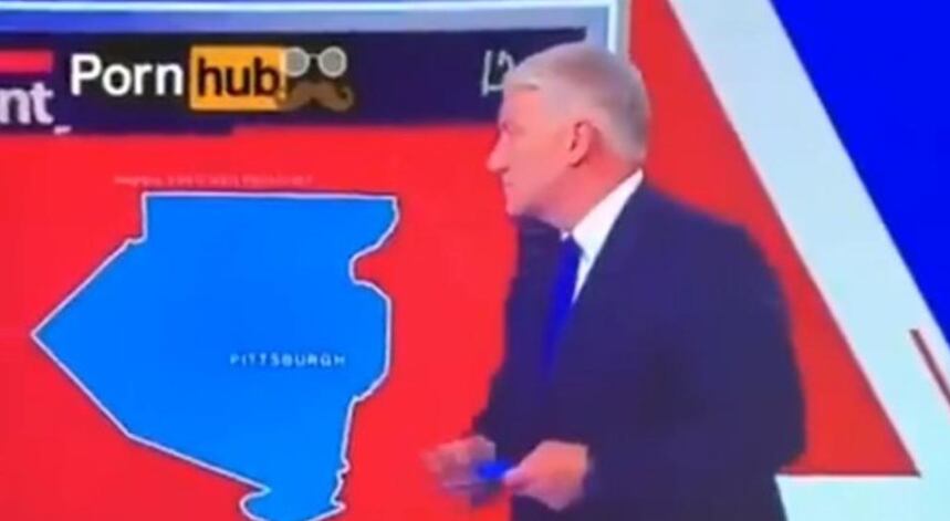 Algún ingenioso grabó un programa especial de CNN en donde salen los dos presentadores Wolf Blitzer y John King comentando los resultados de las votaciones en una pantalla gigante y le metió, en edición, una pestaña de Pornhub con la que muchos se fueron resbalados pensando que era real.