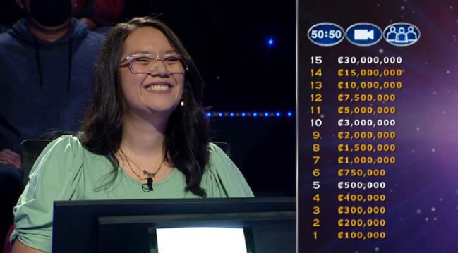 Ella logró avanzar hasta la pregunta 12, pero como no se sabía la respuesta correcta abandonó el juego para asegurar la platica.