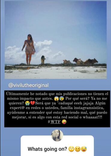 Sin que nosotros seamos expertos en el tema, la respuesta podría estar en qué tanto está preocupada Vivi por estar en boca de todo mundo para que la gente vaya a ver lo que comparte. No nos cabe duda de que cuando estaba en medio de la novela sentimental con Pablo Rodríguez, alcanzaba a más gente y hasta a los medios estábamos pendientes de todo lo que pasara con ese culebrón.