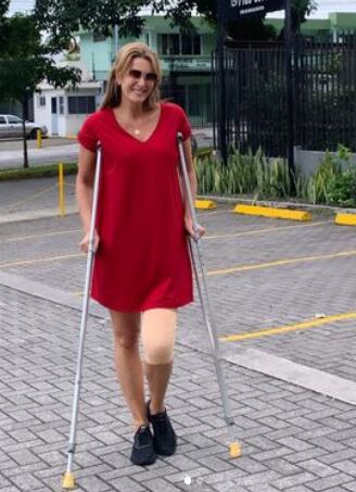 La presentadora Patricia Figueroa va puras tejas tras la cirugía que le realizaron en los meniscos y ya anda caminando, eso sí, con ayuda de unas muletas.