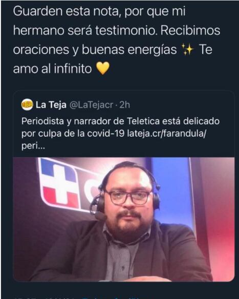 Un ejemplo de eso, es un tuit que hizo su hermana Laura, quien en el 2021 compartió una nota de La Teja en donde se informaba que Adrián estaba delicado por causa de la enfermedad que ha afectado a millones en todo el mundo.