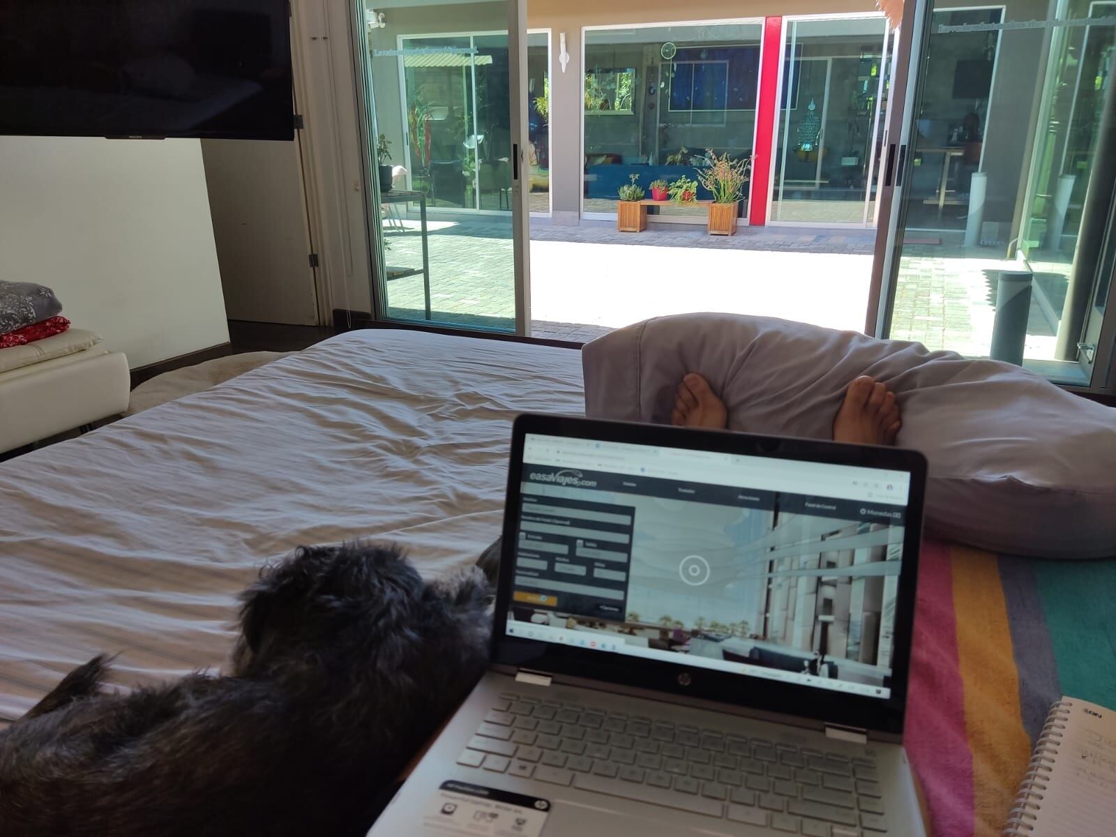 Cuando regresa a su casa desde el canal se sienta de nuevo en la cama o en el sillón para seguir trabajando y así sentirse activo.