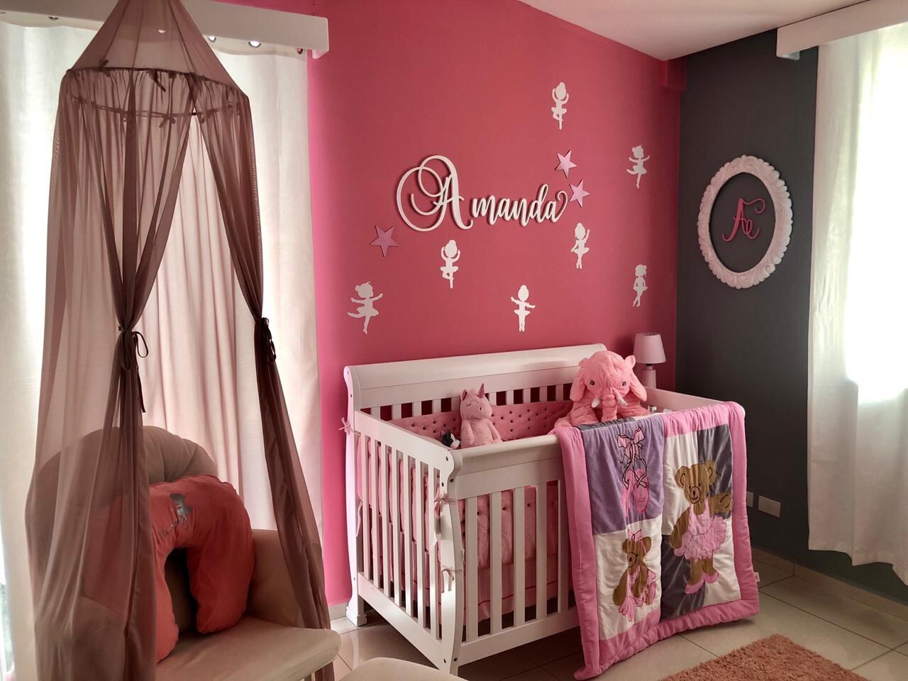 El dormitorio también está decorado con muñequitas y ositas con tutús y lo pintó con los mismos colores que usará en la fiesta de bienvenida de la pequeña.