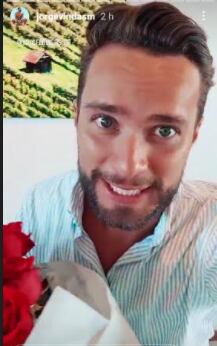El galán le llevó 100 rosas rojas a su amada, la periodista Fiorella Mora, con la que tiene unas semanas saliendo.