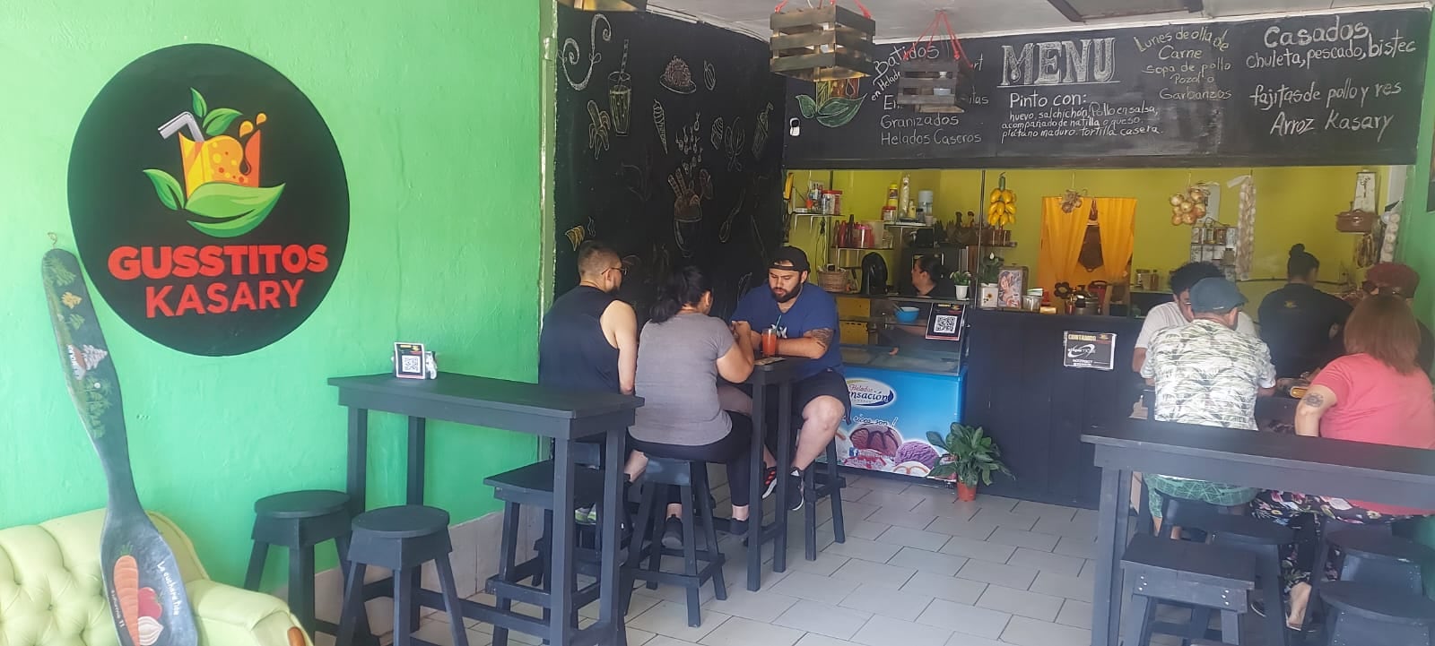 Gussticos Kasary es el nombre del negocito familiar que abrieron hace menos de un mes y que les queda muy cerca de su casa. Ese es el mismo nombre que le pusieron a la venta de helados que tenían en la sala de su casa.