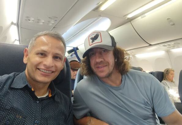 Resulta que cuando venía de regreso al país, se sentó a su lado en el avión, el exfutbolista español Carles Puyol, uno de los principales jugadores del F.C. Barcelona y de la Selección de España.