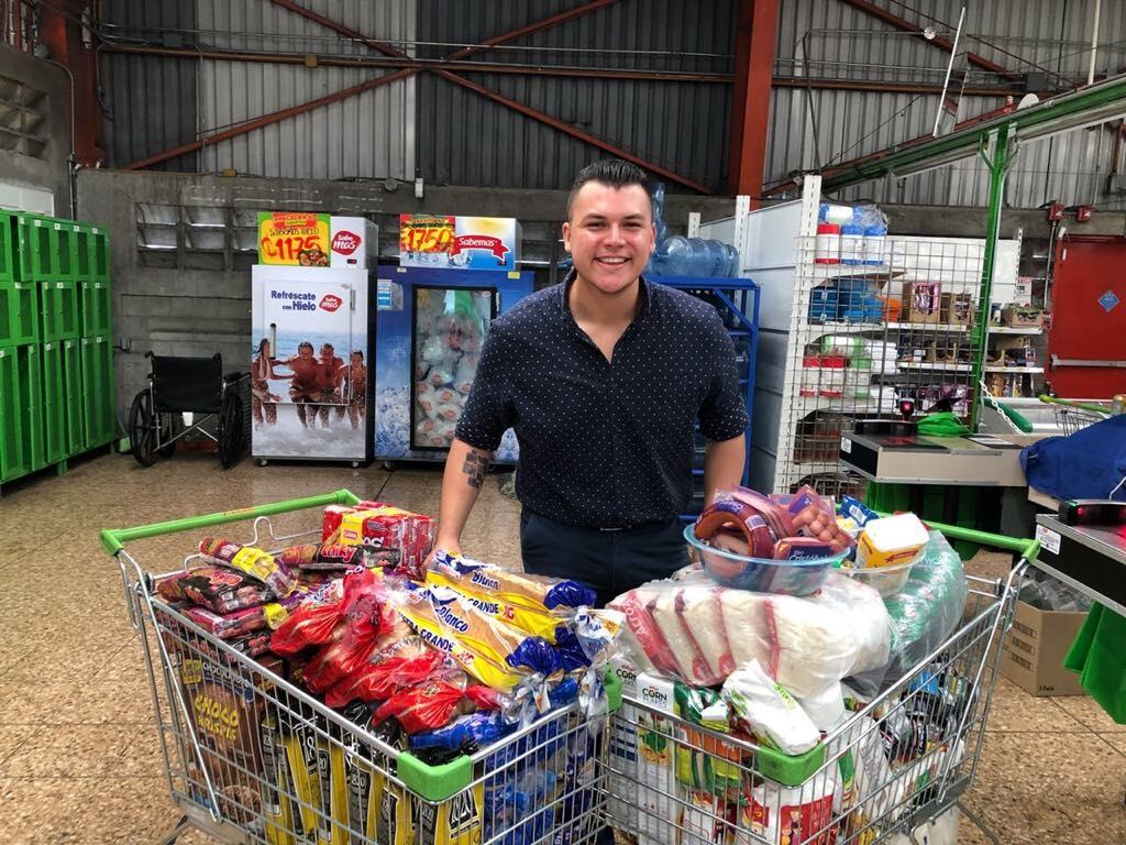 Este sábado, el periodista de espectáculos de Telenoticias Josué Sánchez se alistó y jaló a repartir toda la comida que logró recolectar en el programa “Sábado Feliz” cuando participó en la sección de la carrera de Palí, a finales de julio.