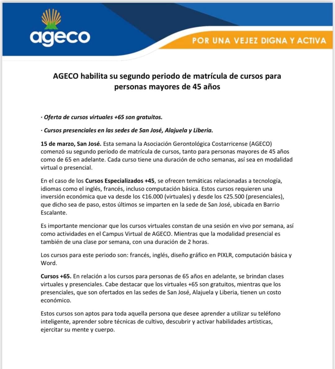 Entre esos cursos de los que habla el comunicador, están algunos relacionados con tecnología, inglés, francés, computación básica y se imparten en la sede de barrio Escalante, en San José. Hay algunos para mayores de 45 y otros para los que pasan los 65.