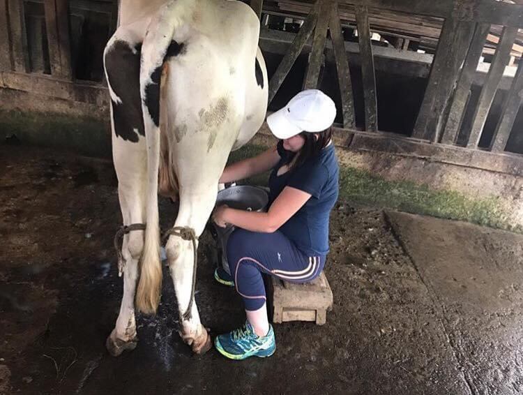 Aquí tenemos una pequeña finca familiar y siempre estoy metida entre potreros, ríos, caballos, me gusta mucho este ambiente y siempre me voy a meter al río o a ordeñar, me desestreso muchísimo.