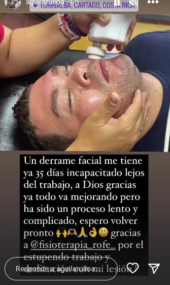 Me confirmaron que eso era parálisis de Bell, así le llaman a ese derrame, y me incapacitaron ocho días, pero volví donde el doctor y estaba exactamente igual, me incapacitaron ocho días más. Volví otra vez a cita y estaba igual, me incapacitaron por 12 días más. Después de esos días me sentí un poco mejor, por lo menos hablar un poco más fluido, pero aún así me incapacitaron 16 días más que se terminan el próximo 2 de agosto.