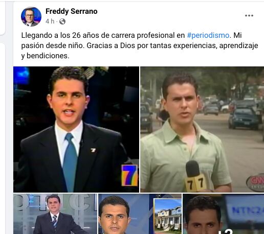 “Llegando a los 26 años de carrera profesional en #periodismo. Mi pasión desde niño. Gracias a Dios por tantas experiencias, aprendizaje y bendiciones”, escribió en esta ocasión en sus redes.