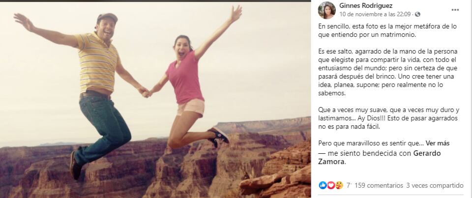El martes anterior en su cuenta de Facebook Ginnés le escribió unas palabras a su esposo, estando ya internado en el hospital, para recordarle que no soltaría su mano y muchos de los allegados a la pareja le demostraron apoyo.
