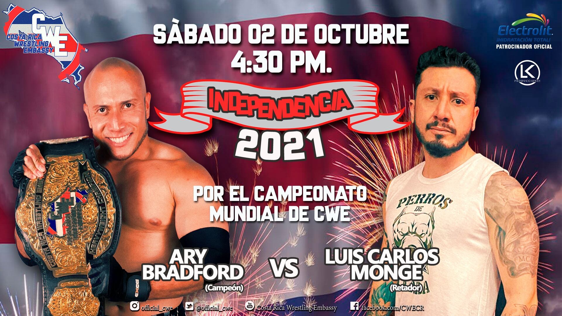 El Perro de Traba, como se le conoce en el ring, se subirá al ring este sábado a las 4:30 p. m., para enfrentarse a Ary “el Toro” Bradford, otro luchador tico y actual campeón mundial de la compañía, que pondrá en juego su título en un evento llamado Independencia, el cual contará con cinco luchas, siendo la de Monge y Bradford, la pelea estelar.