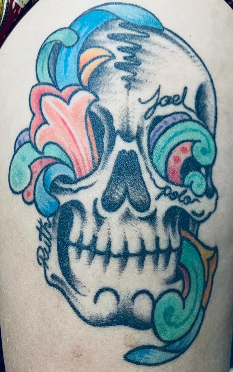 Yo le conté la idea a uno de mis excompañeros del colegio que se llama Néstor González, de Sailor’s Grave Tattoo, y él me preguntó si estaba segura que en la pierna y no sé... siento que es la pierna más bonita y es la que siento que está más cerca de la mano más libre. Siempre que voy manejando voy agarrándome el tatuaje o cuando estoy sentada me pongo la mano ahí, como para sentirlos cerquita.