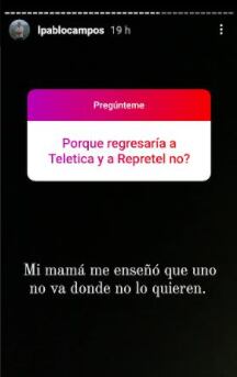 Hace unos días el periodista Pablo Campos, quien ahora trabaja en canal 8, de Multimedios, se puso a contestar algunas preguntas de sus seguidores de Instagram.