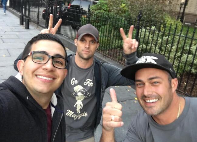 Otro día caminando por el centro de Nueva York se encontró a los actores de la serie de Chicago Fire y con ellos sí pudo tomarse una fotico.
