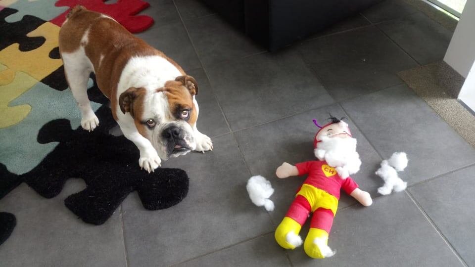 Siempre pensé que cuando tuviera uno lo iba a cuidar cómo se merece. Por dicha la señora que limpia la casa es una santa, que lo adora y se viene a cuidarlo cuando no estoy. Antes lo dejaba donde lo compré, pero hay mucho bulldog y una vez me lo aruñaron y le dejaron una herida y pensé que mejor ya no.