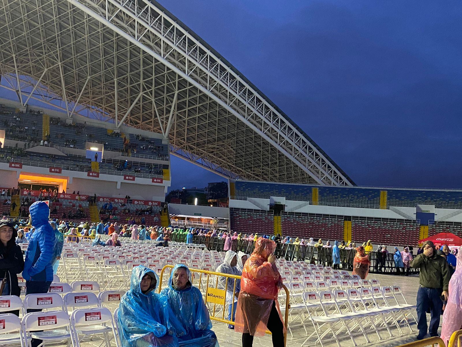 Si usted viene para el concierto tome nota de que está lloviendo y que dentro del estadio hay venta de capas y ponchos, solo que a precios que van desde los 3 rojitos.