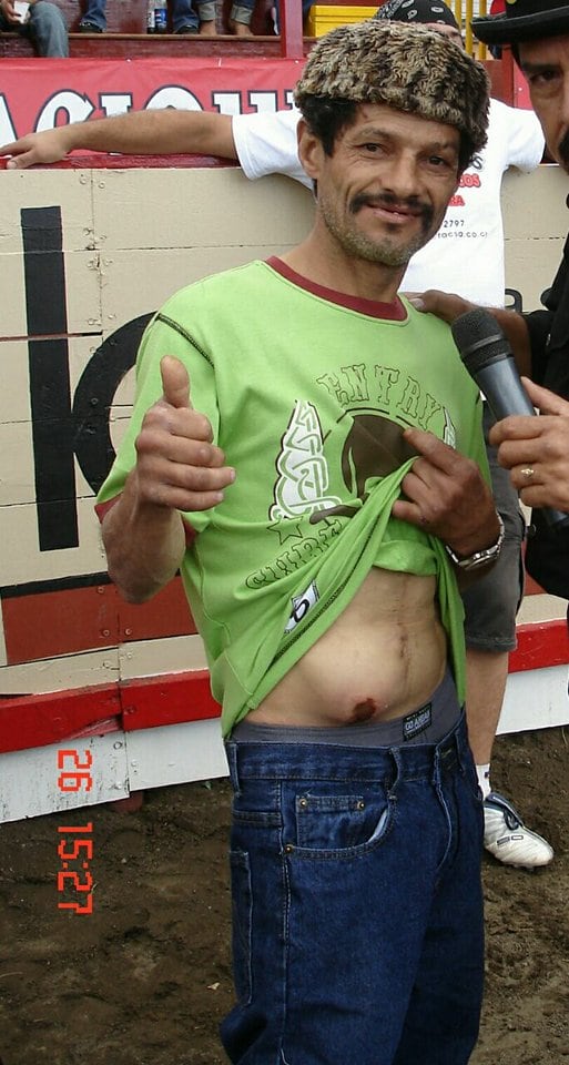 “Cuando un toro salía, a veces yo me lo montaba encima mío, era el único loco igual que yo, le olía las patas y todo, me lo montaba en los hombros y los pies los tenía en el cuello mío, él ahí parado, que si el toro se daba vuelta, imagínese qué nos podía pasar”, recordó.
