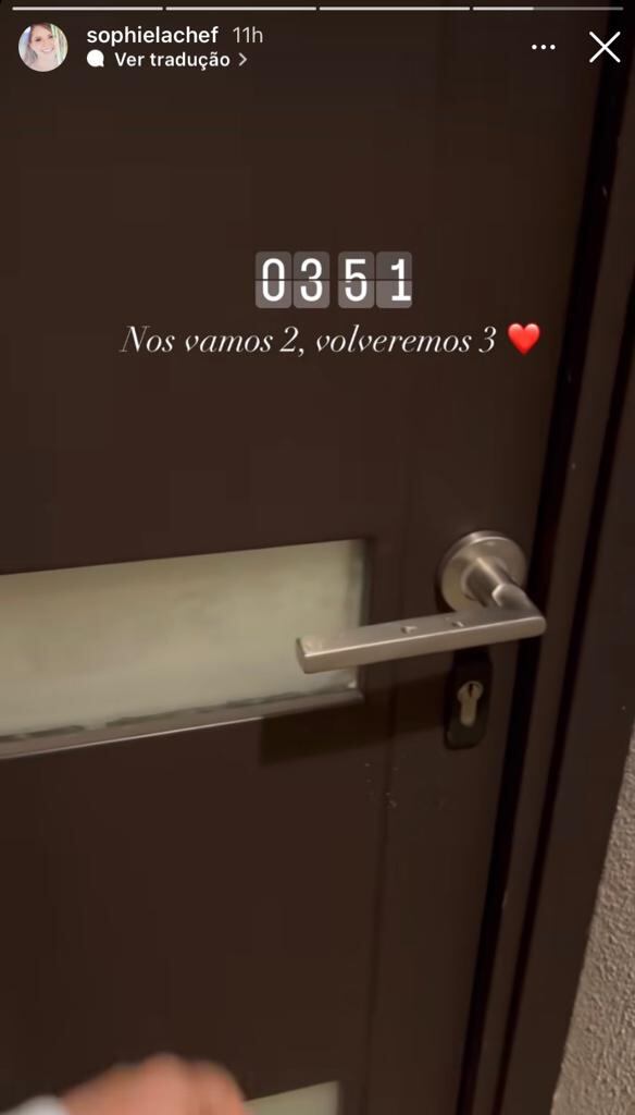 “Nos vamos dos, volvemos tres”, escribió la empresaria gastronómica en una historia que puso en Instagram cuando salió con su esposo Ricardo Zoch al lujoso centro médico.