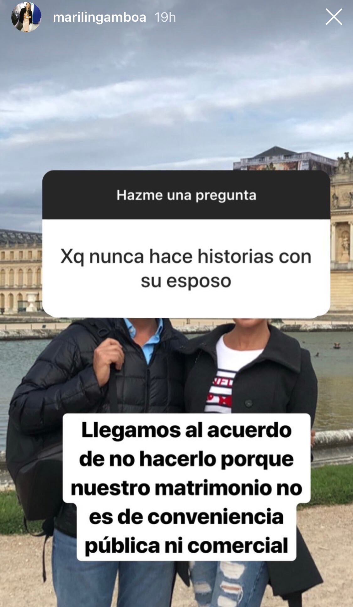 Gamboa, de 41 años, decidió mandarse al agua y estrenar la función de preguntas en la historias de Instagram. Ahí le preguntaron porqué nunca hace posts con su esposo.