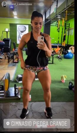 Carol subió una historia a su cuenta de Instagram mostrando las tucas que se maneja, por lo que más de uno quedó con la boca abierta porque los músculos que se le ven no se obtienen fácilmente, menos en una parte del cuerpo a la que mucha gente no le gusta trabajar en el gym.