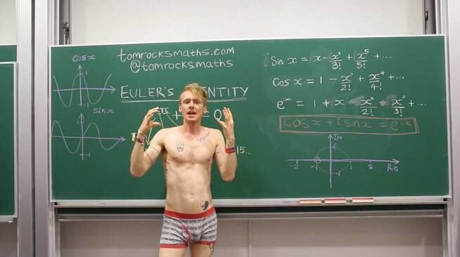 Su nombre artístico es Tom Rocks Maths y es conocido como ‘el Matemático Desnudo’ porque realiza muchos de sus videos sin camiseta y hasta sin pantalones.