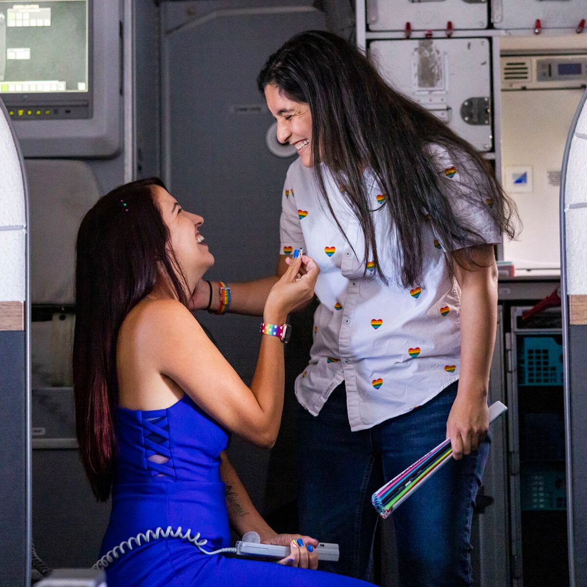 La compañía explicó que las dos mujeres se conocieron mientras volaban en uno de sus vuelos hace dos años, casualmente en la misma ruta en la que se comprometieron.