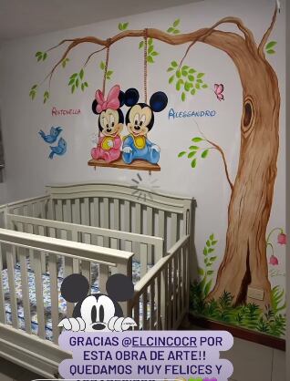 La presentadora de Informe 11 decidió pagar para que le hicieran un mural en la pared con las figuras de los personajes de Mickey y Minnie bebés.