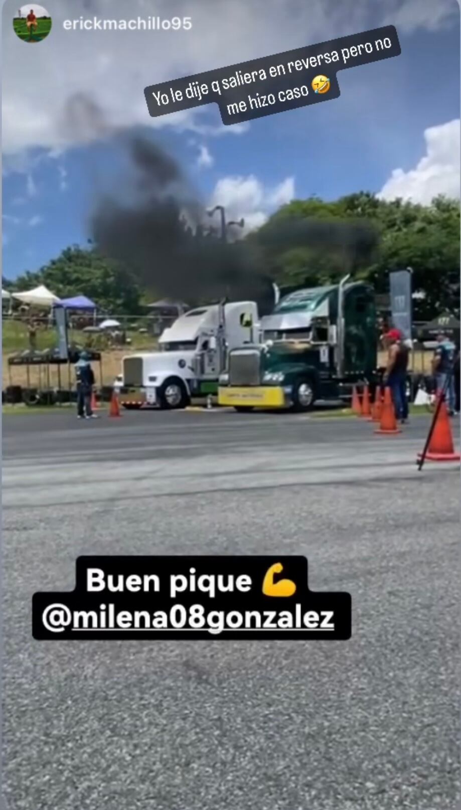 La conocida trailera Milena González no deja de sorprender a sus fans, no solo por su belleza, sino por su valentía al conducir su chunchón verde.