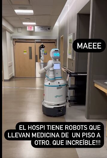La luchadora hija de Lynda Díaz compartió un video desde el hospital de Texas donde fue operada hace unos días, que muestra a un lindísimo robot repartiendo los medicamentos.