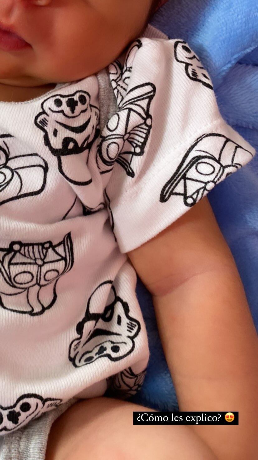 Andre compartió la primera imagen de su bebito la mañana de este miércoles, en donde se le ve apenas un bracito y un mameluco hermoso de la Guerra de las Galaxias.