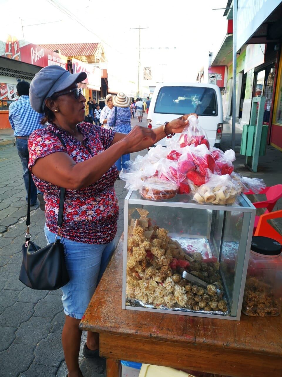 Jeanneth Rodríguez Villareal, quien es vecina de barrio Los Camarenos, tiene 40 años de vender sus productos a la orilla de la calle y contó que quienes más compran son las personas que no son de Santa Cruz.