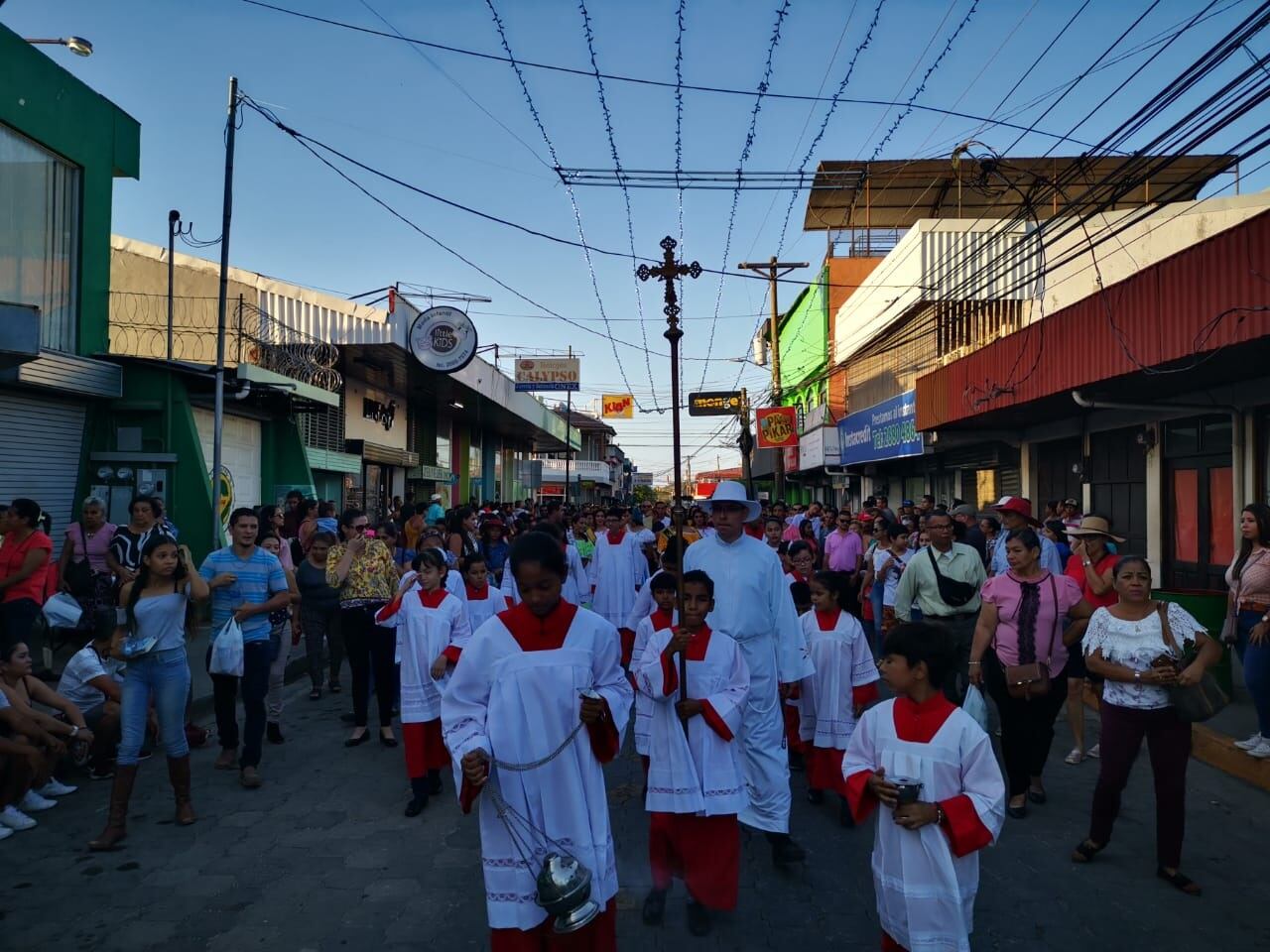 A las 4 de la tarde de este martes se hizo la tradicional procesión del Santo Cristo de Esquipulas por la comunidad, la cual fue encabezada por la reina de las fiestas, Nayeli Matarrita, y sus dos damas, Dayana Obando y Kiara Viales.