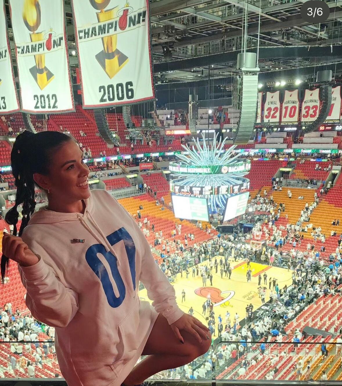 Rodríguez, quien anda paseando en Estados Unidos, es una fiebre de la NBA y fue por eso que aprovechó para tirarse uno de los partidos de la final entre los Nuggets y el Heat de Miami en el Keseya Center.