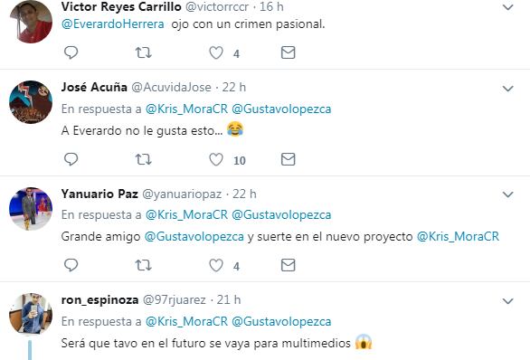 “Everardo Herrera, ojo con un crimen pasional”, “A Everardo no le gusta esto”, “En buseta para Uvita” y “Llévese a Everardo para que sea una transmisión llena de miel”, fue parte de lo que se dejaron decir los tuiteros.