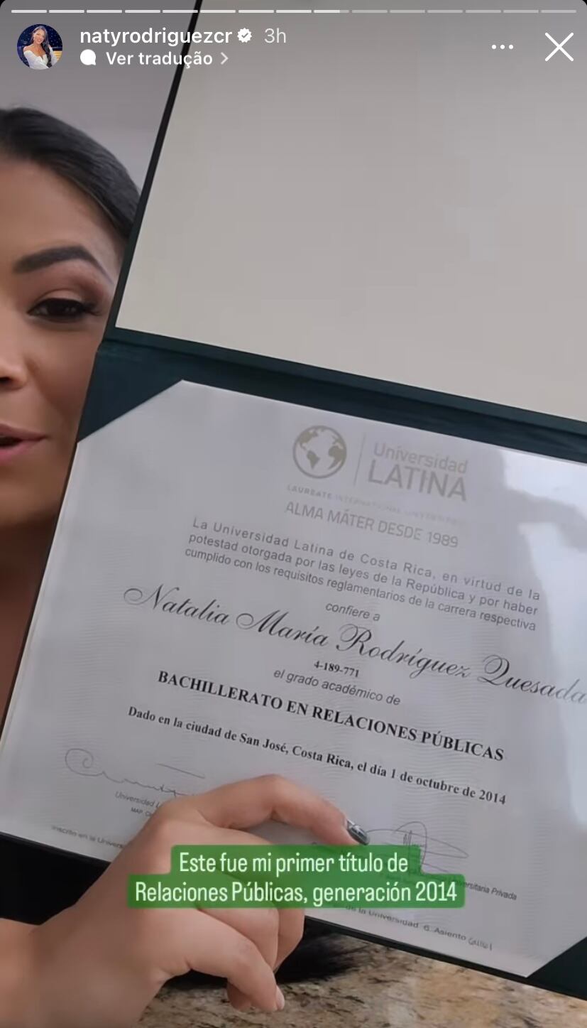 Naty dedicó varias historias en su Instagram para hablar ampliamente de su formación profesional y de cuál es el título más importante de los recibidos hasta este momento.