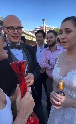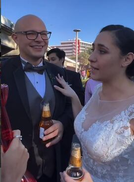 Ellos fueron los que más llamaron la atención la madrugada de este domingo al llegar vestidos de novios y con birra en mano a festejar que seguimos vivos en el Mundial de Qatar.
