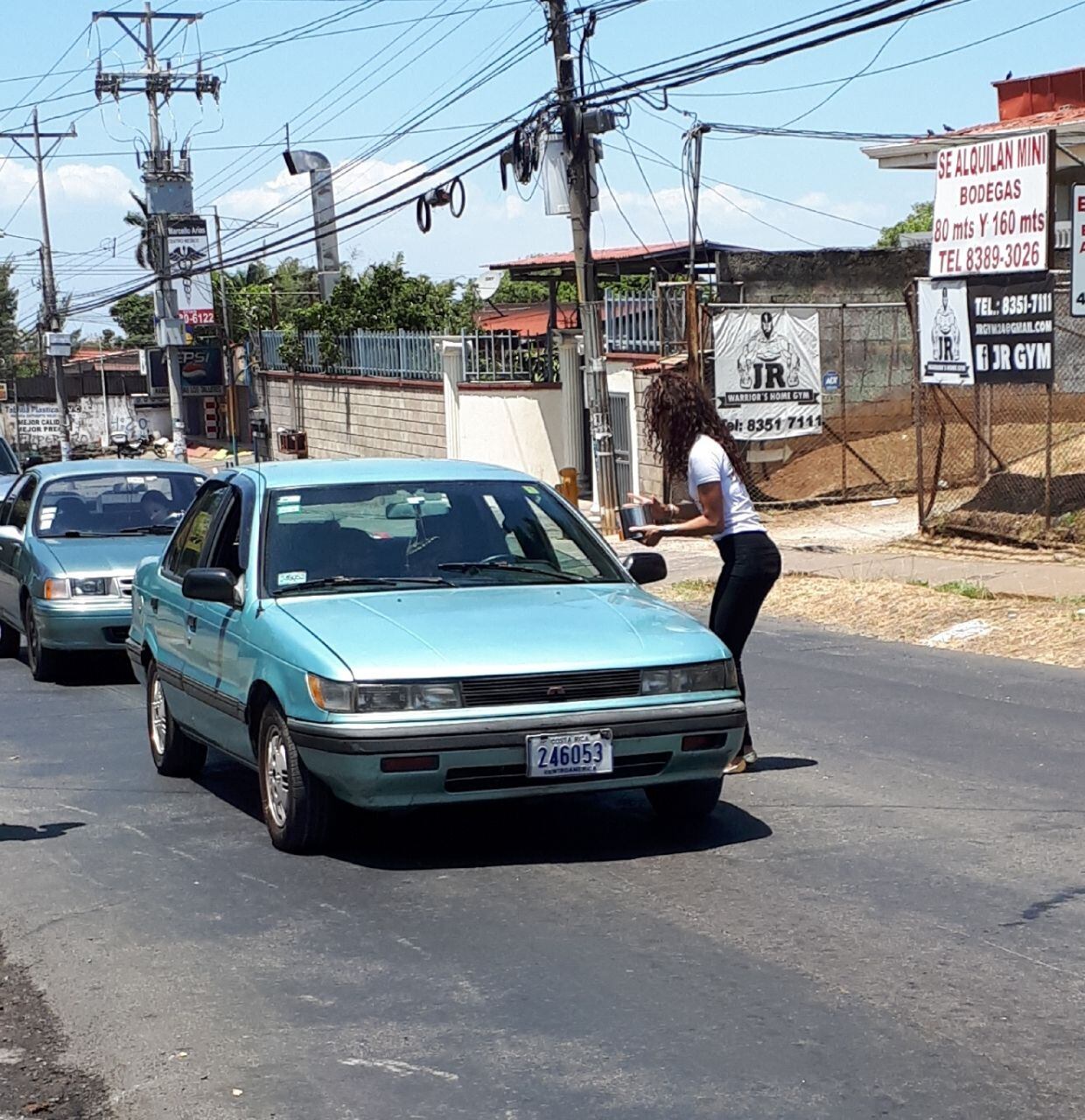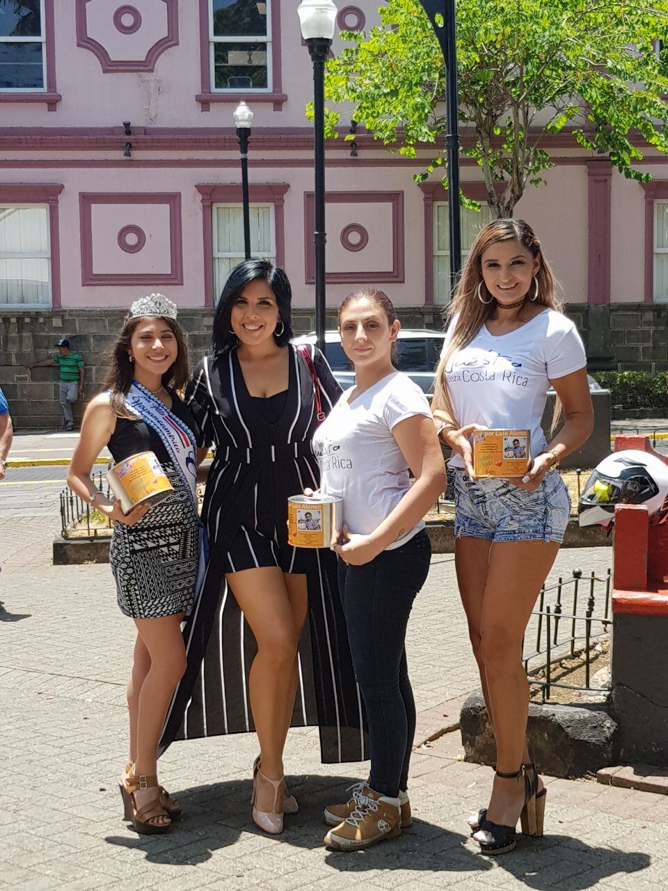 Por ejemplo, a estas hermosas mujeres no les importó el solano que estaba pegando y se fueron con alcancías a pedir dinero al parque central de Alajuela.